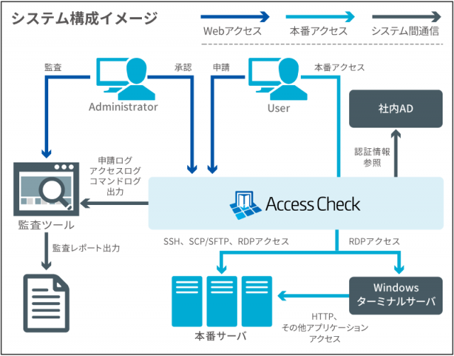 新たなアクセス管理ツールの検討に着手し、複数の製品を比較検討した結果、SecureCube Access Checkが最終的な候補にあがりました。その理由を藤井氏は、「7割がLinuxとUNIXが占める当社のOS環境に対応できるのがSecureCube Access Checkだけだったこと。また、ログ取得についての十分な条件を満たす基本機能を備えていたことが主な理由です」と語ります。 価格も重要なポイントでした。他社製品は仮想サーバ1台ごとにライセンスの購入が必要で、導入後に台数が増えればその都度追加が必要です。一方、SecureCube Access Checkは本番サーバの台数変更やクライアント追加の際も新しくライセンスを購入する必要がないため、見積もり価格に格段の差があったことも決め手になりました。